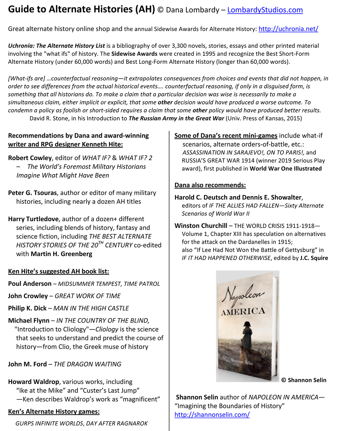 Alternate History Hand Out 2020